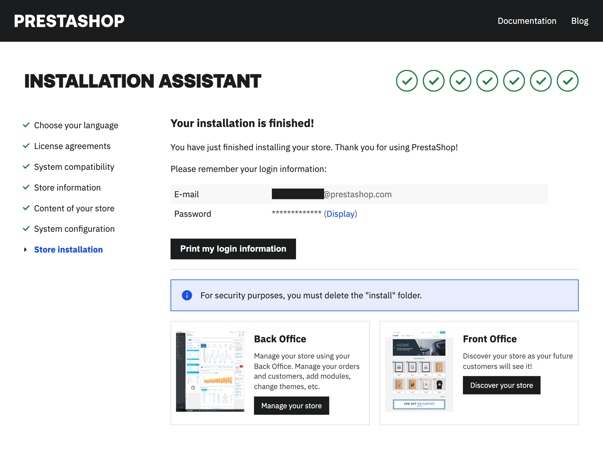 Once it is done, your store is installed and ready to be configured!