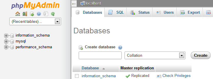 In the left column, you can see the databases currently available on your MySQL server.