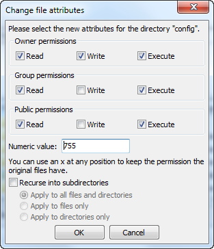 Some folders might need to have all their files and sub-folders change permissions too. In that case, check the "Recurse into subdirectories" box.