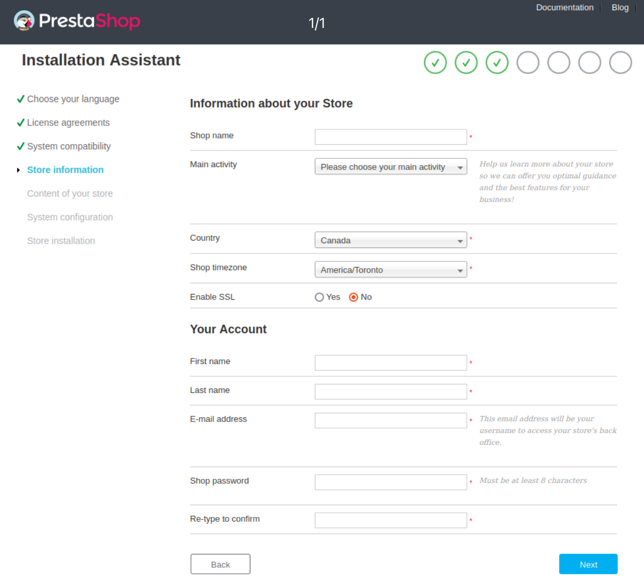 Installing PrestaShop