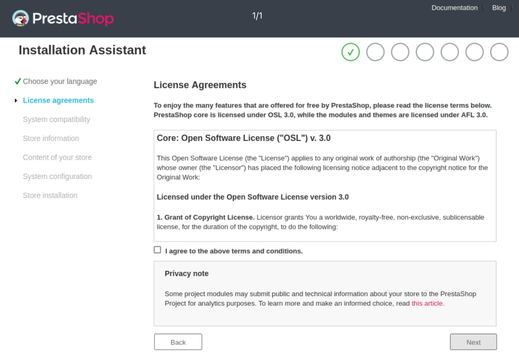 The installation process is quite fast and straightforward, as it is streamlined by PrestaShop's auto-installer. You should be able to browse through it in a handful of minutes. Make sure to read each page thoroughly so as not to miss any information.