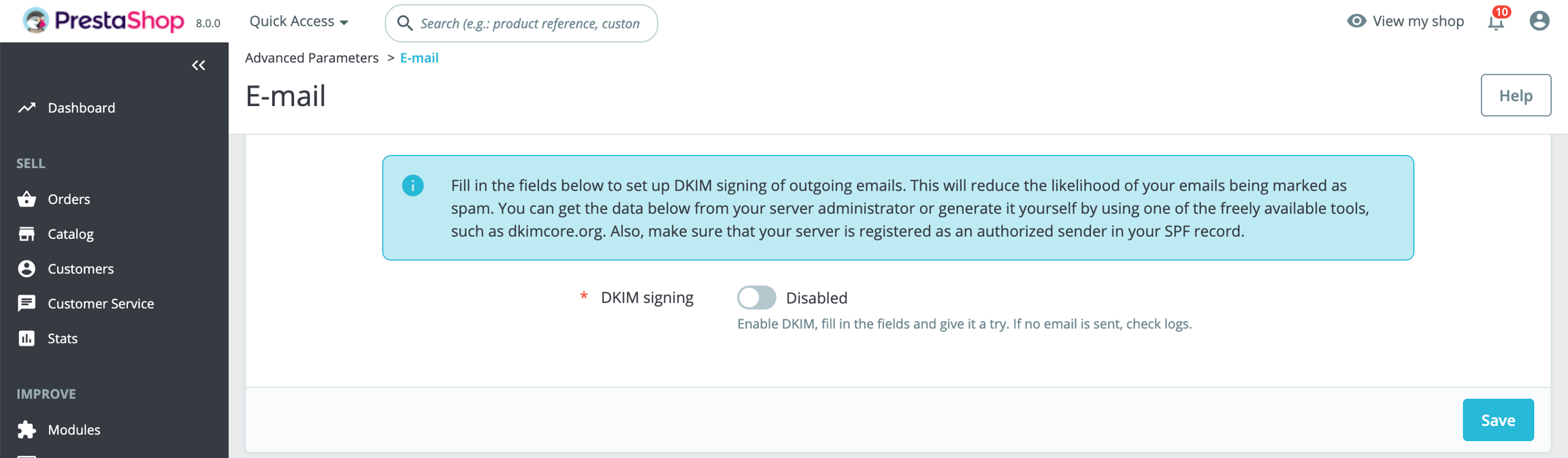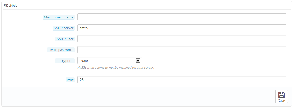 Configure PrestaShop to send emails to your customers. We strongly advise you that you consult your web host to determine which settings to use for this feature. The options are: