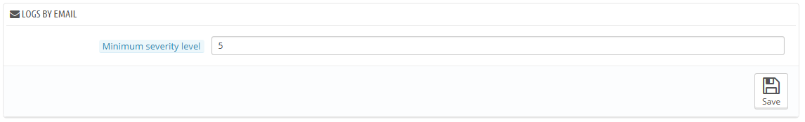 The error levels also serve as values for the "Logs by email" feature. PrestaShop adds one last value, 5, which indicates that the administrator does not want to receive any notification, either for minor or major errors.