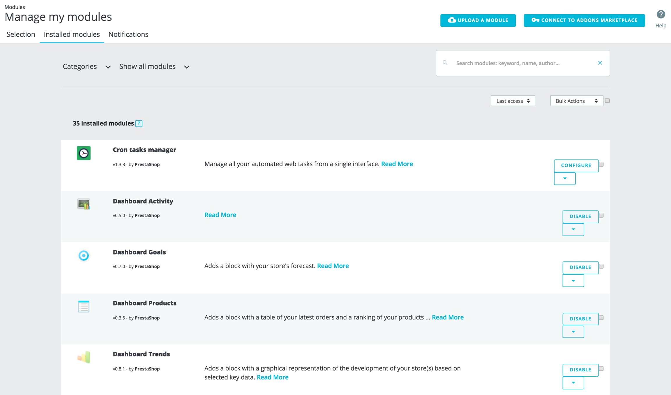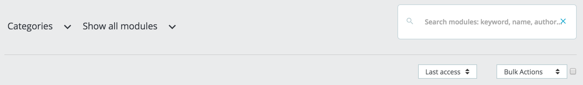 These actions can be performed either individually on each module, or in mass thanks to the "Bulk actions" menu on the right.