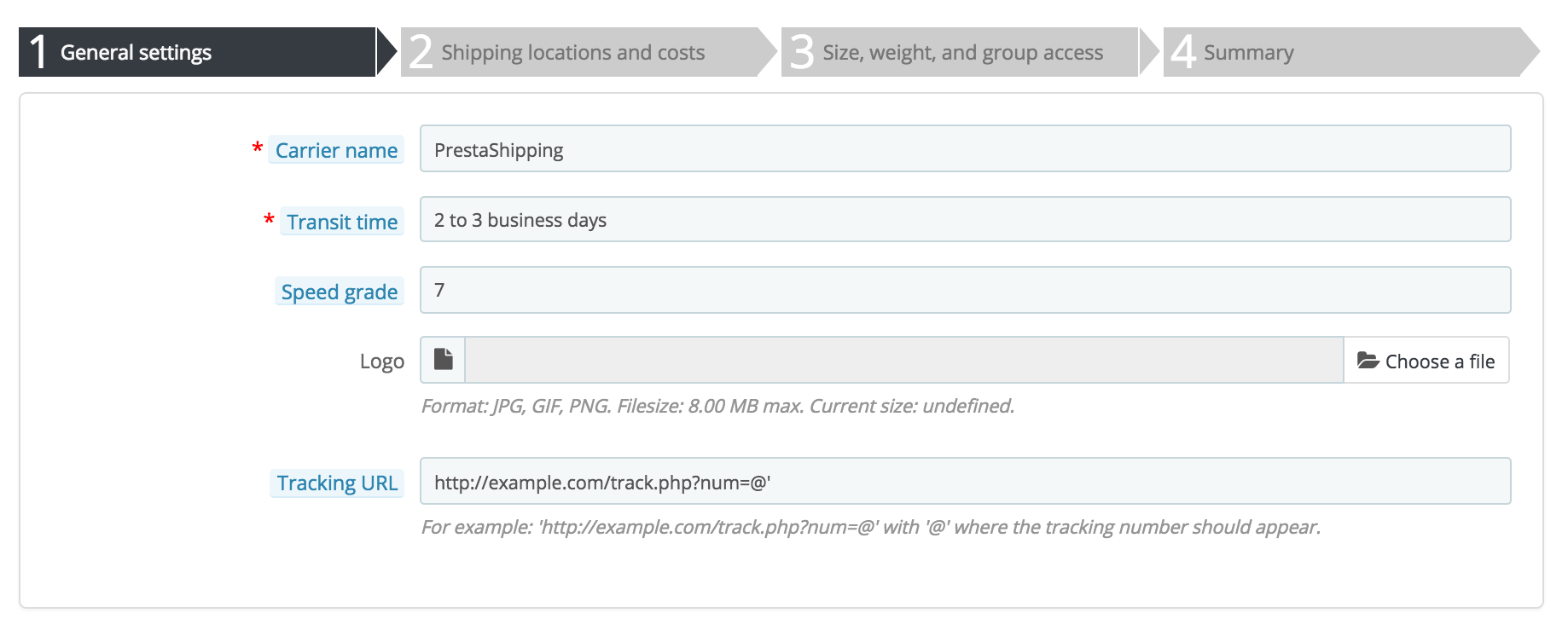 You must have carriers added to your PrestaShop installation – that is, a clear indicator of who will deliver your products. It might be just yourself or your shop (for instance if you are selling downloadable products, or only work locally), but as soon as you are actually sending packages using stamps and a 3rd-party delivery such as your local postal service, or FedEx, UPS and such, then you must have their details added to your shop's database. This will enable your customers to better choose which carrier to use, based on their delivery ranges, fees, and dates.