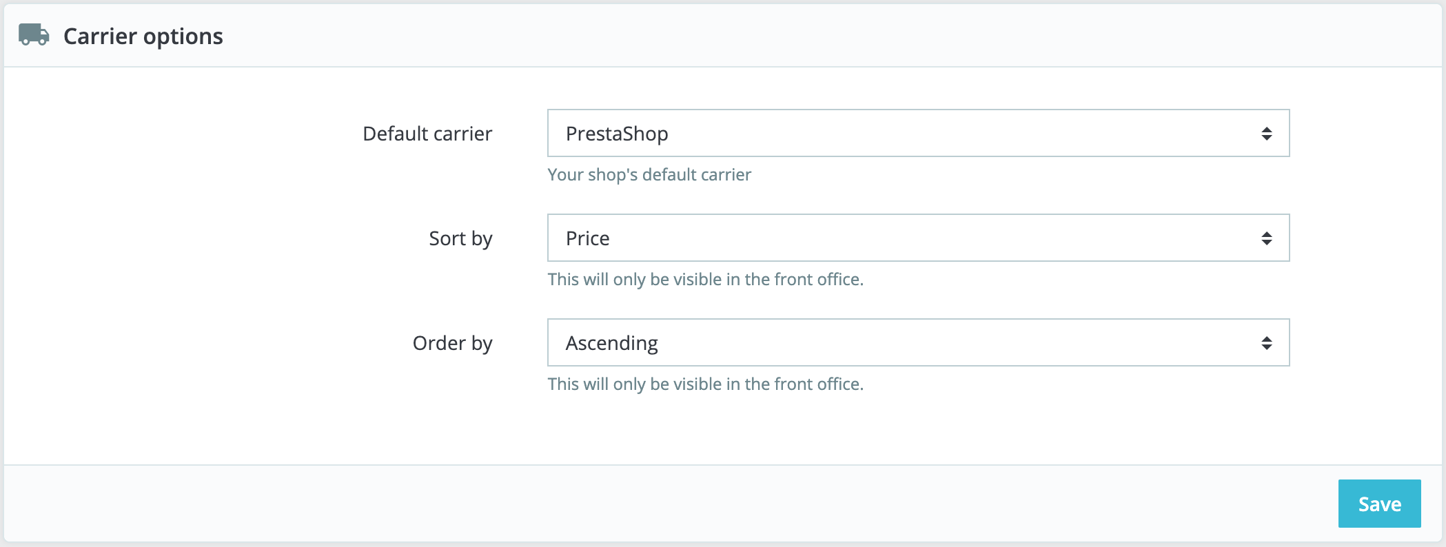 The "Carrier options" section gives you access to 3 settings, which impact the front office in order to help the customer make a choice: