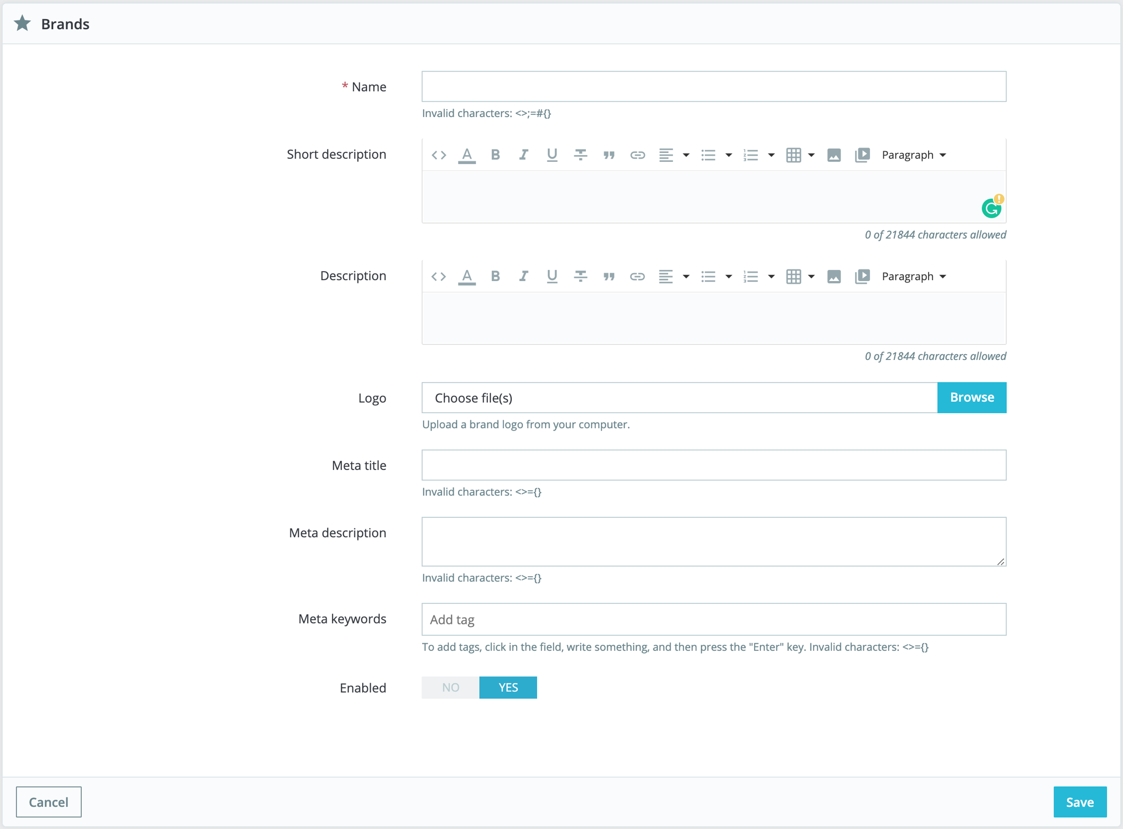 Click on the "Add new brand" button, and a creation form appears.