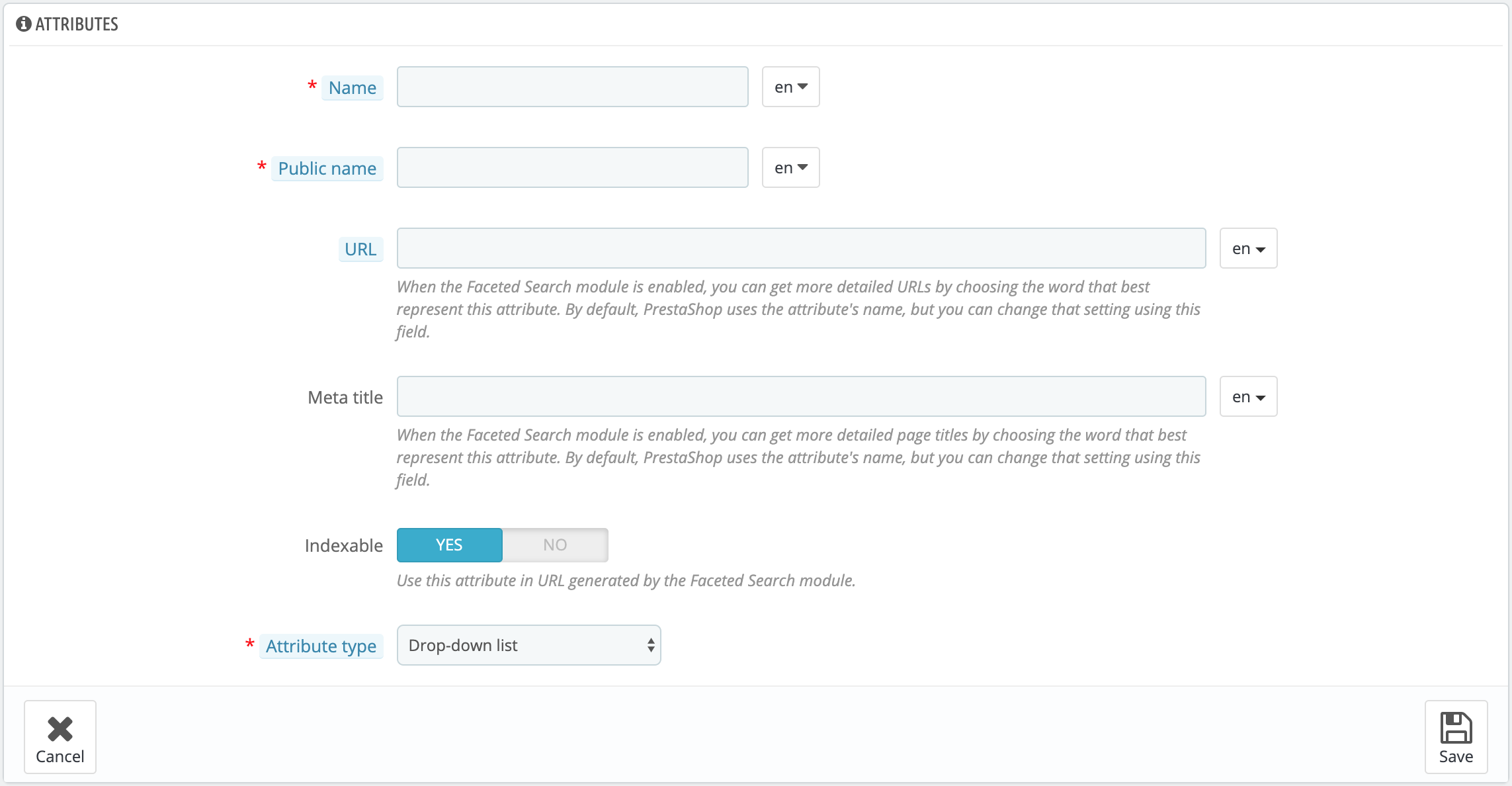 Save your new attribute to return to the attributes list. You must now add values to your attribute.