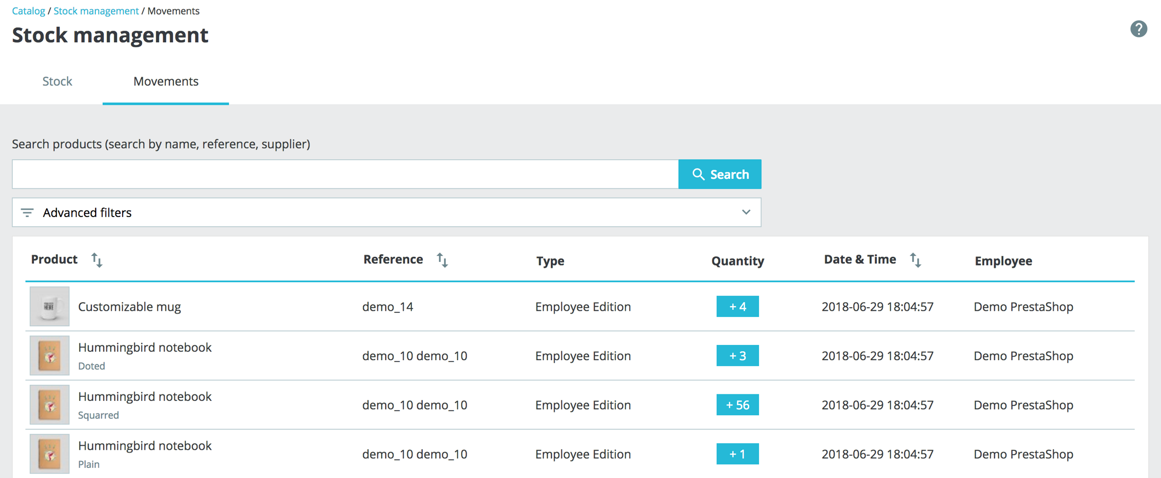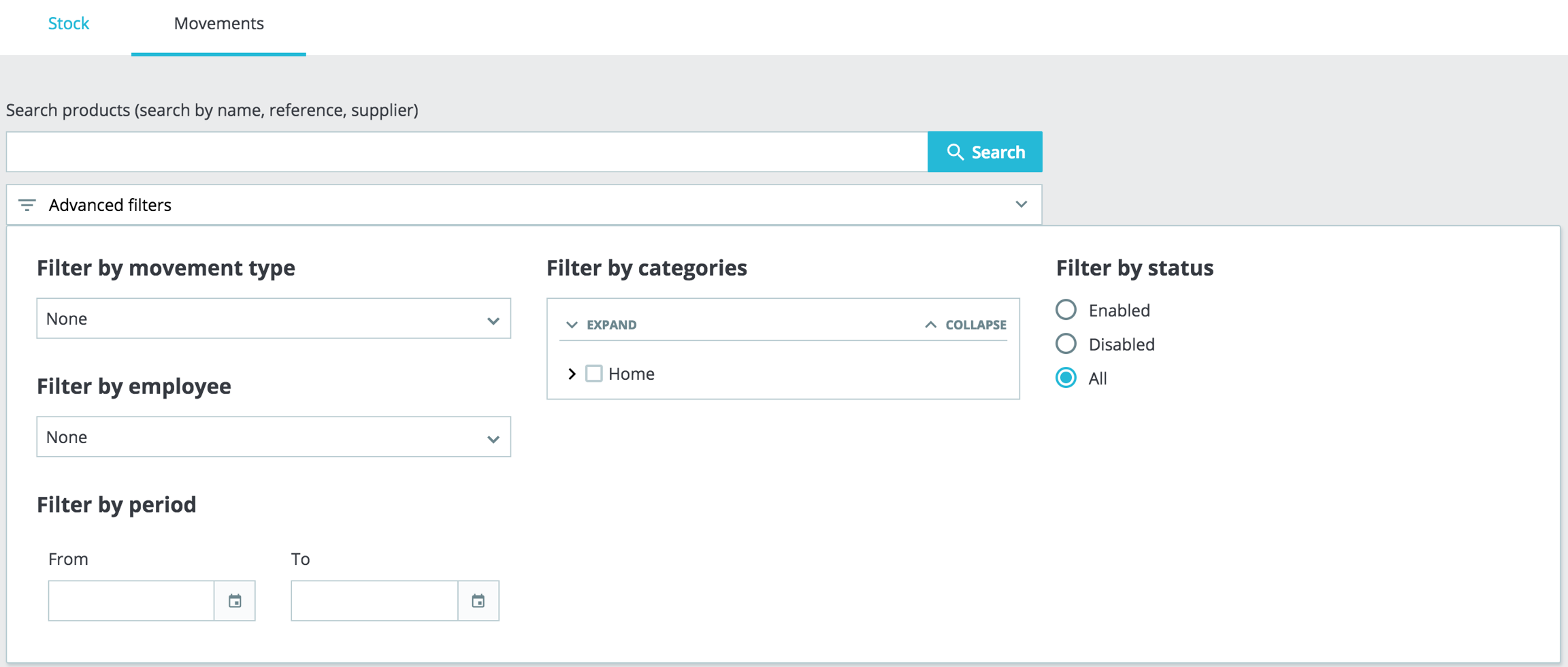 The table of stock movements provides you with a log of all the stock changes. Because it’s a history of previous stock movements, this table only has an informative role and therefore cannot be edited.