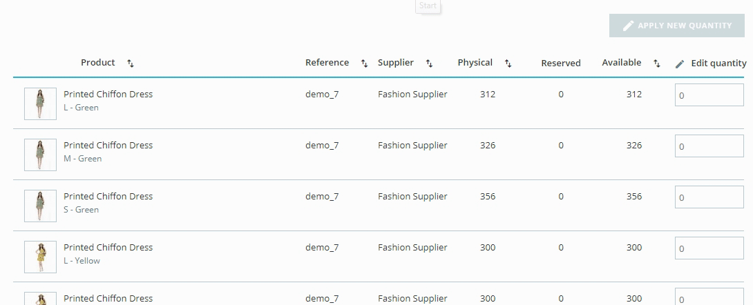 If you want to edit multiple quantities at the same time, you can also edit the quantities of several products and then validate it all with the “Apply new quantity” button.