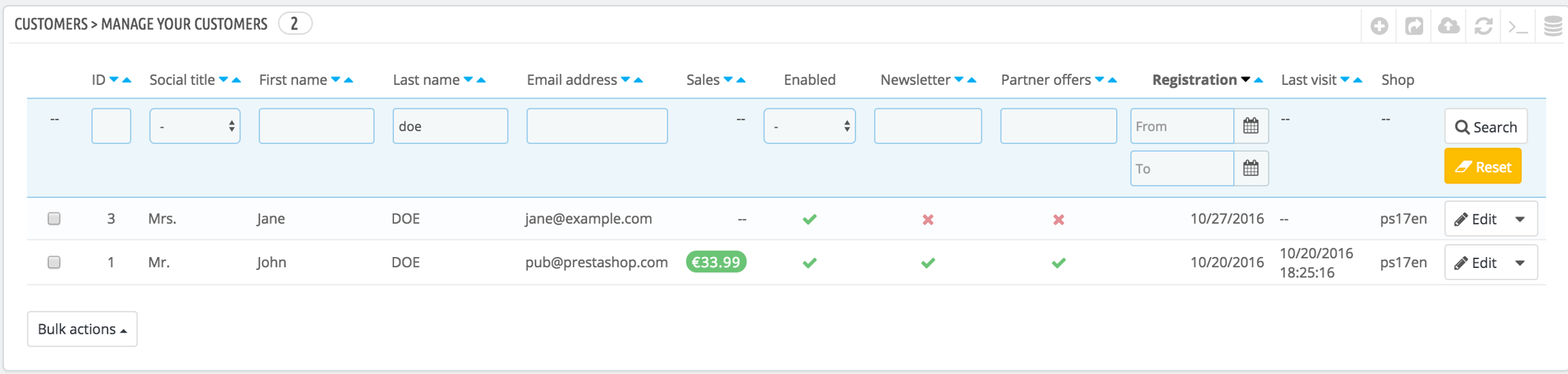 Searching for a customer on your PrestaShop shop can be done two different ways.